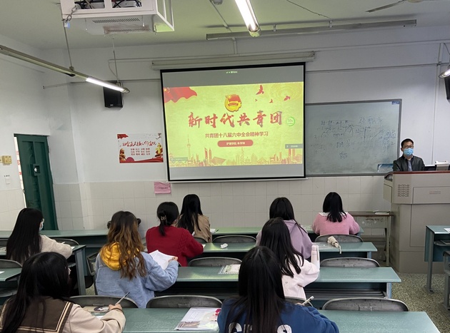 主讲老师线上线下分别从“两会精神”,“习近平与青年”,“党的十九届六中全会精神”,“共青团十八届六中全会精神”,“基础团务”等五个方面与同学们进行了交流学习,同学们认真聆听,积极讨论。
