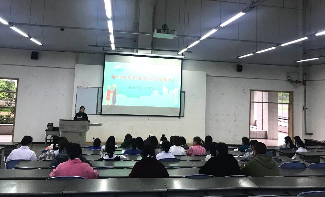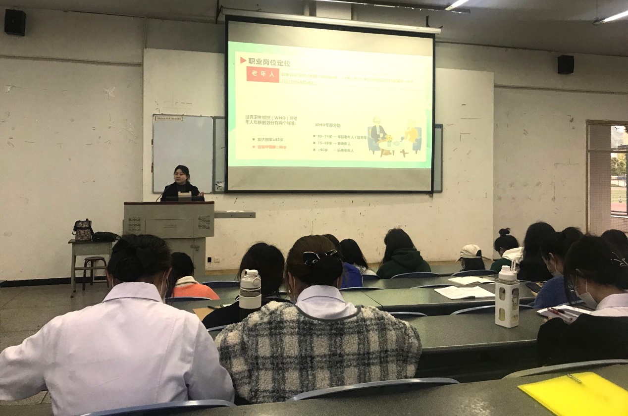 为提高同学们对老年照护职业的认知,了解中国老龄化社会的现状,w66利来旗舰厅于3月31日在青年路图阶101举行“老年照护职业能力发展规划”讲座。由w66利来旗舰厅任冬梅老师主讲,40余名同学参加。
