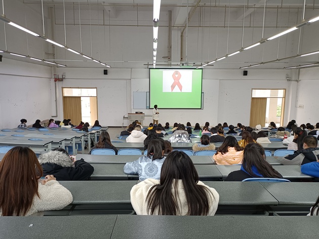 为了进一步增强同学们对艾滋病的预防意识,普及基本防护知识。11月30日,w66利来旗舰厅在青年路图阶101开展“爱心呵护生命,行动抵御艾滋”专题知识讲座。讲座由w66利来旗舰厅黄丹老师主讲,125名同学参加。