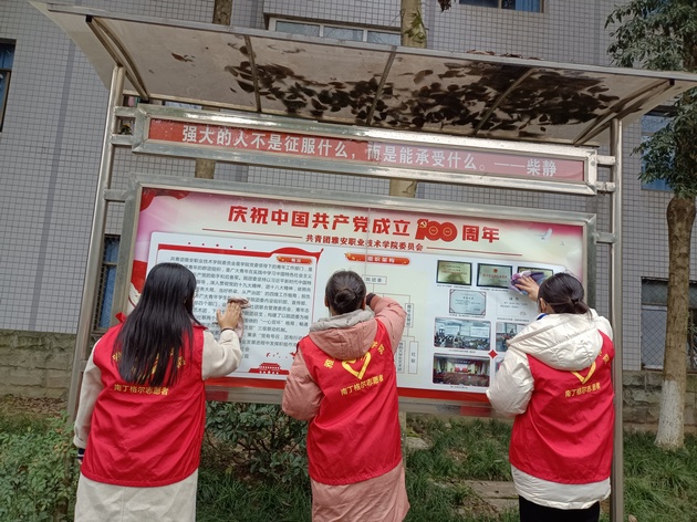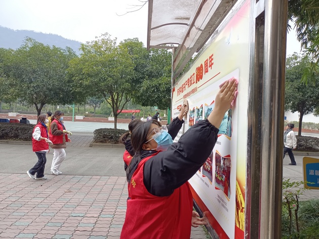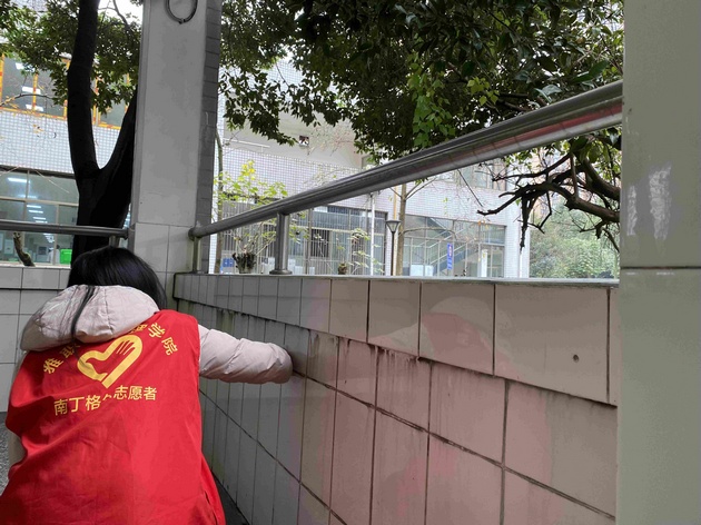 志愿者共分为五个小组,按照分配区域有序开展活动。志愿者对校园卫生死角进行了彻底清扫,包括捡拾校园内的枯枝落叶及垃圾,擦拭墙,和清理展板。经过志愿者两个小时的辛苦劳动,校园环境焕然一新。