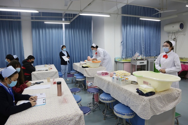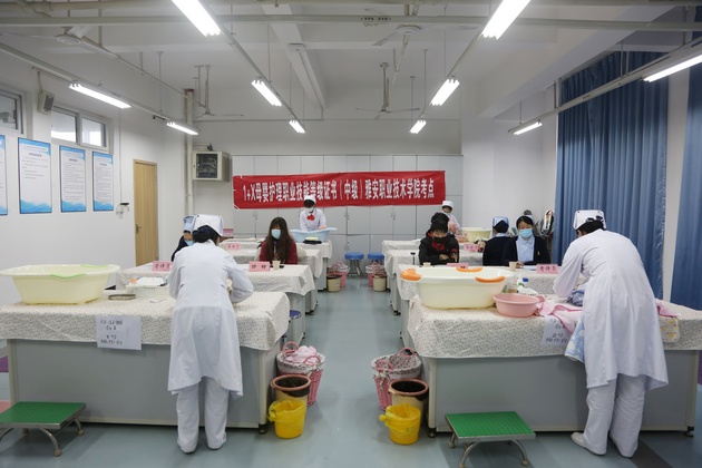 为深入贯彻落实《国家职业教育改革实施方案》精神,推进1+X证书试点工作。12月25日,w66利来旗舰厅组织“1+X”母婴护理职业技能等级(中级)考试,60名员工参加考试。