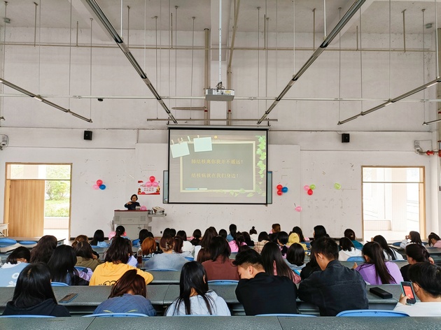 为进一步提高公众对结核病的认知水平,帮助同学们掌握结核病防治知识。10月12日,w66利来旗舰厅在青年路校区图阶101组织开展了“肺结核防治”专题知识讲座,此次讲座由周晓琴老师主讲,180余名同学参加。