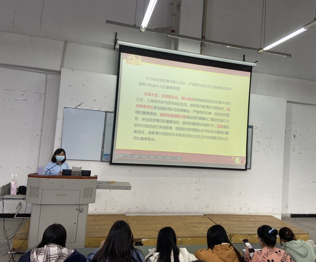 本期团课采用线上线下相结合的授课方式。开课伊始,主全体成员佩戴团徽并起立奏唱团歌《光荣啊,中国共青团》;员工会组织部同学柳锐宣读团校培训学员管理和考勤制度;万黎老师带领大家学习基础团务,三会两制一课及团员发展流程等知识。