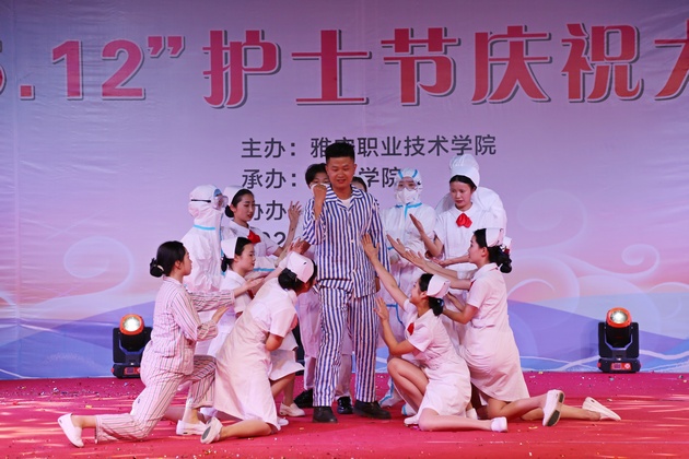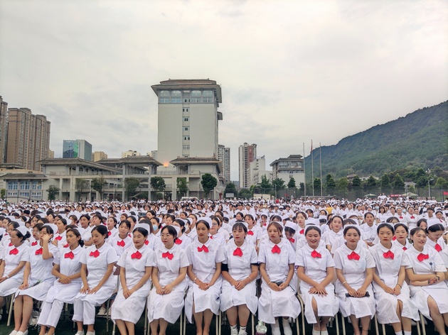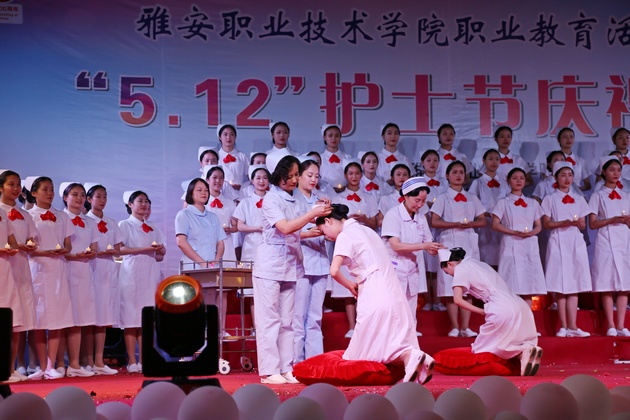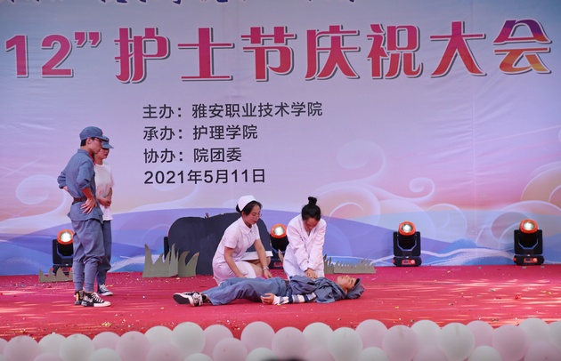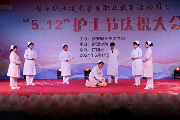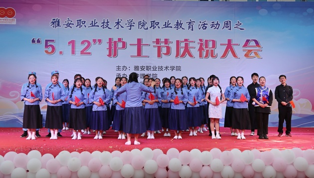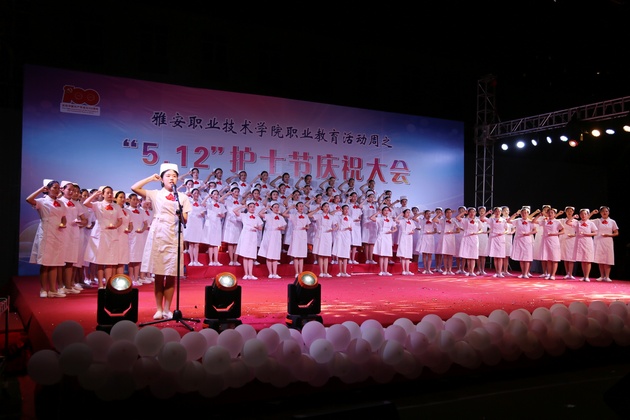 在建党100周年之际,5月11日晚,w66利来旗舰厅在青年路校区足球场隆重举行w66旗舰厅官网职业教育活动周之“5.12”护士节庆祝大会。公司党委副书记付洪涛,w66利来旗舰厅经理王静,党总支书记姚婕,院团委副书记叶芋伶,w66利来旗舰厅副经理李燕,党总支副书记张翅,雅安市人民医院护理部主任、雅安市护理学会理事长胡盛琳,雅安市中医院护理部主任、雅安市护理学会副理事长黄丽琼,雅安市护理学会副理事长任雅琼应邀出席,w66利来旗舰厅全体师生,兄弟公司员工会主席团代表3000余人参加了晚会。