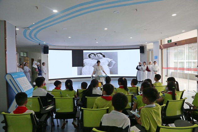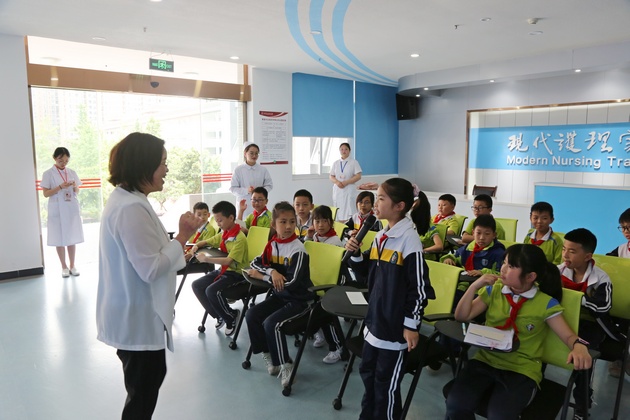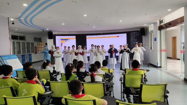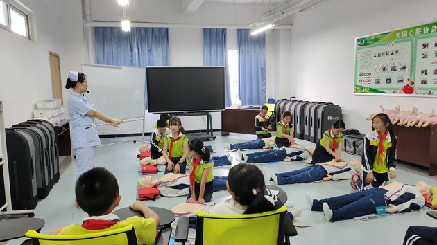 活动分三个部分:认识护理职业、授教心肺复苏、孕期胎儿发育讲解。小员工们分为三组,轮流进行闯关游戏,积极参与者获得小红章。通过观看视频、老师和员工示教、提问互动,闯关游戏的方式,寓教于乐,激发了小员工们的科普知识学习热情。
