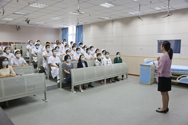 8月30日,w66利来旗舰厅与雅安市人民医院联合培养首届“1+2”护理订单班开班仪式在青年路实训楼504举行。雅安市人民医院护理部胡盛琳主任、大内科护士长李车琼、急诊科护士长罗娜、护理部干事白梁桃,w66利来旗舰厅经理王静、党总支书记姚婕、副经理李燕、教研室主任陈俊,教师黄蕾,以及订单班全体35名同学参加开班仪式。