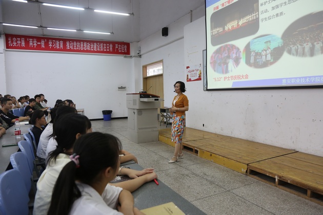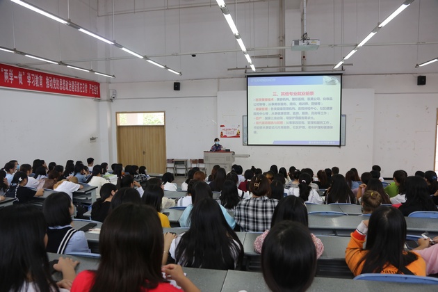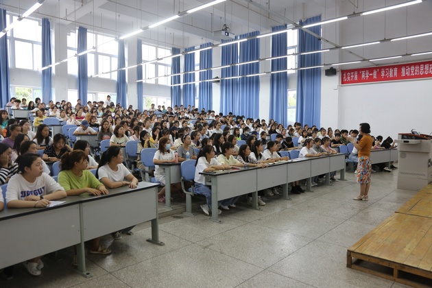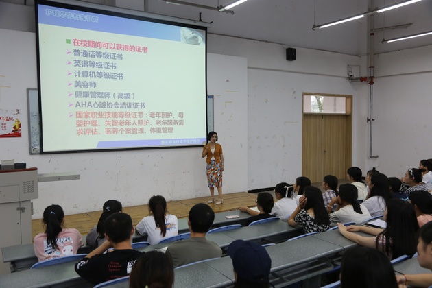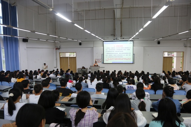 丹桂飘香,金秋送爽。9月14日,w66利来旗舰厅分别在青年路图阶101、102和育才路教214开展了2021级新生入学教育。由w66利来旗舰厅经理王静、副经理李婧、党总支书记杨泽刚、副书记张翅、基护教研室主任陈俊主讲,新生辅导员及1400余名新生参加入学教育。