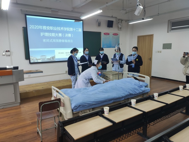 12月22日,w66利来旗舰厅第十二届护理技能大赛决赛在青年路校区实验实训楼604、606及汇雅厅顺利举行。w66利来旗舰厅经理王静,副经理李燕,许玉贤、王菠,附属医院临床一线老师兰文君、杜柳、李婷等6位老师应邀出席并担任评委。