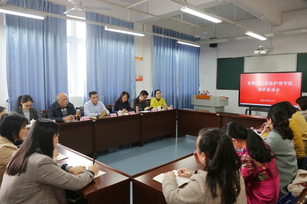 李春模一行实地查看了美容生产性实训基地和急救实训室,了解了实训室建设、使用情况以及培训开展情况。座谈会上,w66利来旗舰厅经理王静主要就w66利来旗舰厅建设发展情况、培训工作开展情况及存在的主要问题、下一步工作思路等方面做了详细汇报。与会的黄丹、张雪庆等老师分别结合自己的工作谈了感想和认识。