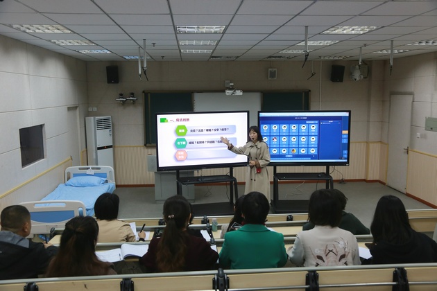 开班仪式结束后,护理名师工作室成员及谢应琴教授来到实训楼504,w66旗舰厅官网闵捷老师为名师工作室成员上了一堂公开课,名师工作室成员及谢应琴教授对本堂课给予了高度评价,并对如何打磨一堂好课提出建设性意见。