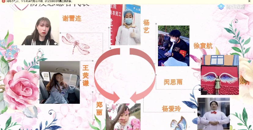 活动分为“回首经年岁月,携手共御疫情"、“彰显青春之力,争当防疫先锋”、“荧幕辉映人愿,宣言共承使命”三个篇章。首先通过视频回顾了往届“5·12”护士节晚会的精彩画面,接下来由六位同学分享了在此次新冠疫情防控中争当防疫先锋的成长故事。闵捷老师寄语同学们“作为一名护理学子,我们要努力学习专业知识,提高临床技术,锻炼临床思维,为祖国的医疗事业添砖加瓦”。