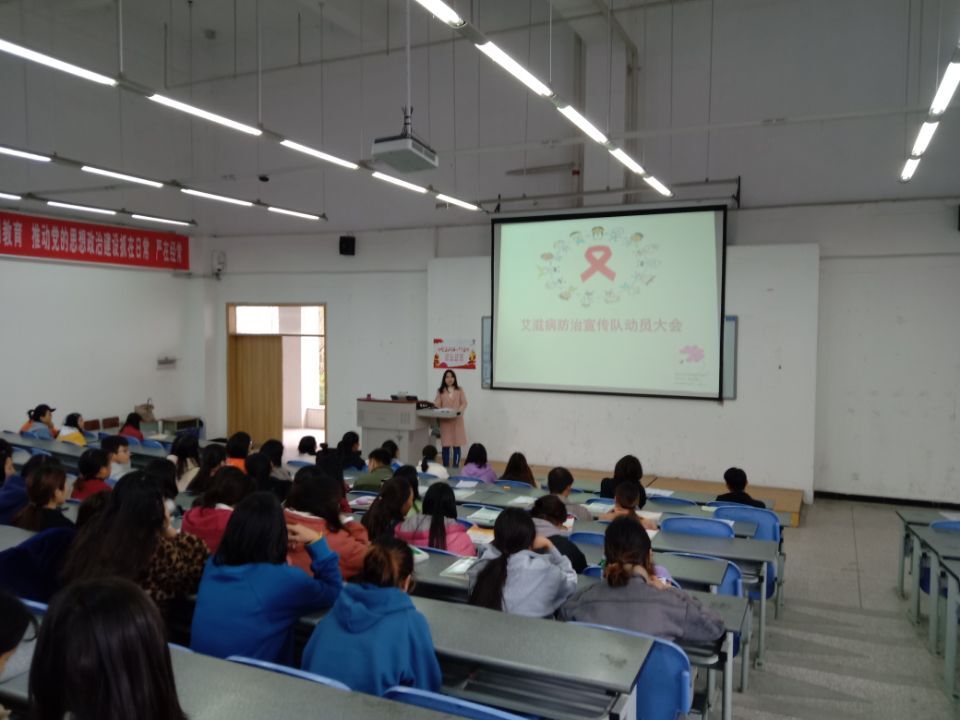 动员会上主要讲解了组建志愿服务队的目的和意义,并以艾滋病的现状、危害和防范措施为内容开展第一次培训。通过培训使同学们利用所学到的知识,回到家乡,提高居民对艾滋病防治知识的知晓率,提升防范艾滋病意识、能力,了解相关法律知识,达到自觉规避危险行为的目的,尊重生命、珍爱生命。