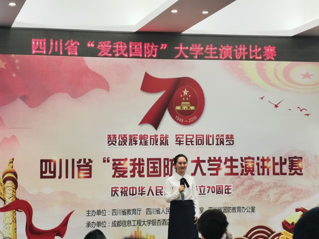 9月29日,四川省“爱我国防”老员工演讲比赛在成都信息工程大学银杏酒店管理公司举行。经过网络选拔和初赛,共有来自省内高校的40名同学进入复赛,w66利来旗舰厅刘懿娴同学代表公司成为唯一一名进入决赛的高职院校选手。