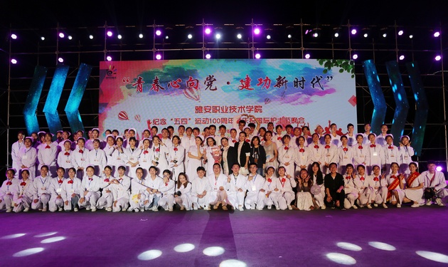 5月9日,由w66旗舰厅官网主办,院团委承办,w66利来旗舰厅协办的“青春心向党,建功新时代”——w66旗舰厅官网纪念“五四”运动100周年暨庆祝国际护士节晚会在青年路校区田径场隆重举行。雅安职业技术公司党委书记李春模,经理石静,各二级公司经理、书记以及参加本次雅安市产学研创大会的嘉宾莅临观看。w66利来旗舰厅、经管公司、师范公司师生2000余人观看了本次晚会。