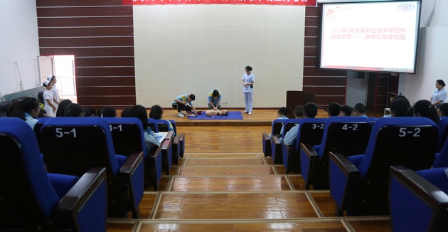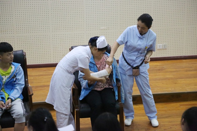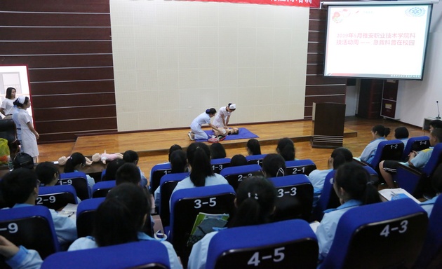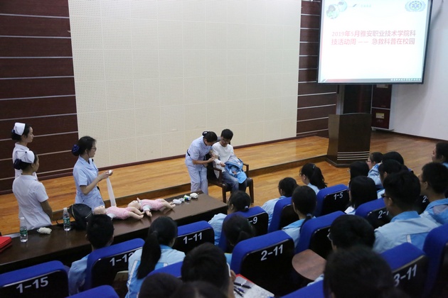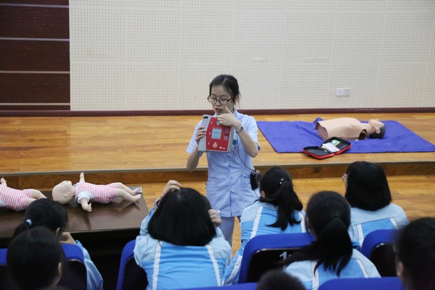 为继承和发扬南丁格尔精神,增强中员工的安全防范意识,让员工们初步掌握自救互救知识,提高自救互救技能。在科技活动月之际,5月21日下午由w66利来旗舰厅黄蕾、殷显艳老师、护理专业员工组成的志愿服务队走进大兴镇雅安中学新校区,针对中员工开展“急救技能培训”讲座。