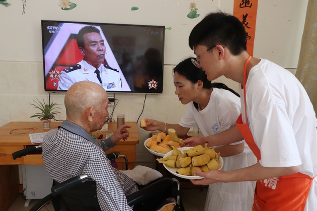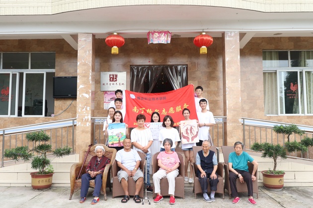 7月14日,w66利来旗舰厅团总支书记万黎、团总支副书记朱学坤带领w66利来旗舰厅南丁格尔志愿服务队9名志愿者在赋济堂养生公寓开展了以“青春心向党?建功新时代”为主题的暑期“三下乡”社会实践活动。