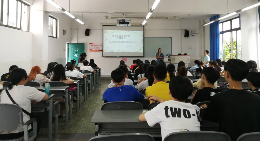 8月29日,为做好2019年迎新准备工作,明确志愿者工作职责要求,w66利来旗舰厅组织60余名志愿者在青年路校区教学楼B205开展专题培训会。护理公司党总支书记姚婕、团总支书记万黎、团总支副书记朱学坤出席培训会。