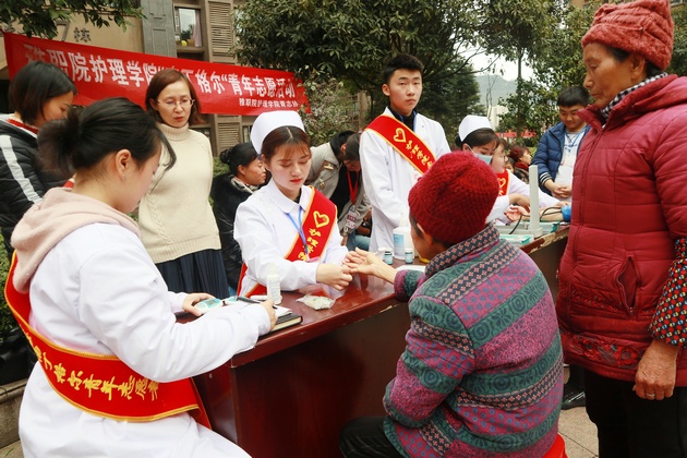 在老师的带领下,志愿者们分工协作,对社区环境进行清扫,为居民发送安全手册,为居民测量血压、血糖。志愿者认真负责,热情周到,得到了社区居民的认可和支持。