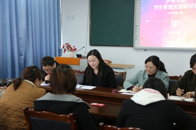 会上辅导员吴玉阳老师就少数民族员工教育管理工作给大家做了交流。内容包括典型案例、存在问题、管理措施,如“9+3”员工生活学习习惯的养成、传染病、资助中存在的问题,员工请假归寝等。其余辅导员、班主任也纷纷发表自己的看法,畅谈体会,介绍工作经验,讨论气氛热烈,交流充分。