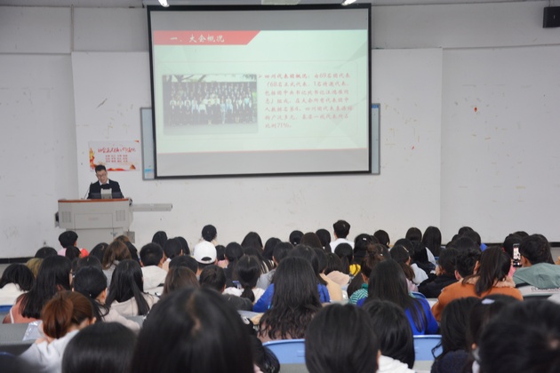 3月19日下午,w66利来旗舰厅、师范公司、旅游经济管理公司在青年路校区图阶102教室开展了第七期团课学习。护理公司党总支副书记叶芋伶,院团委王昌宇老师,师范公司团总支书记左习成,w66利来旗舰厅团总支副书记朱学坤出席团课,240余名同学参加学习。