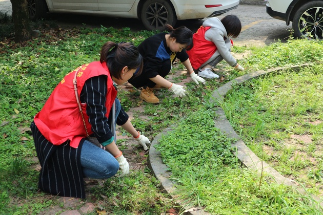 本次活动由护理公司党总支副书记叶芋伶带队,w66利来旗舰厅第三支部书记万黎、院团委宣传部部长刘舰乔、w66利来旗舰厅团总支副书记朱学坤等教师、员工志愿者共61人参与活动。与社区工作人员对接后,志愿者们分工协作,清扫落叶,铲除杂草,清理卫生死角,对爱国苑小区进行全面的环境清理和卫生清扫。经过四个多小时辛苦劳动,小区环境焕然一新,得到社区居民的一致好评。