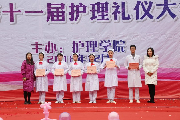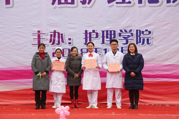 12月18日,w66利来旗舰厅第五届南丁格尔杯护士风采大赛暨第十一届护理礼仪大赛决赛在青年路校区雅馨园门口隆重举行。w66利来旗舰厅经理王静、党总支书记姚婕、副经理廖书娟、李燕,副书记叶芋伶,团总支书记万黎、副书记朱学坤,教师陈俊等应邀出席并担任评委。