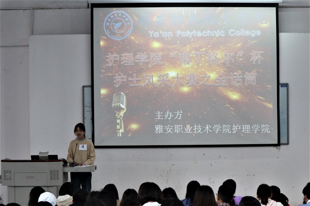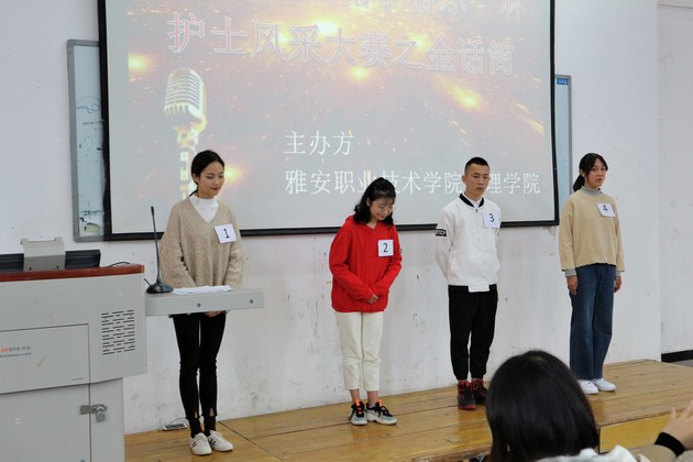 比赛分为三轮,共有19名同学参赛。五个组的选手分别进行模拟主持和现场应变测试。首先是选手自拟运动会、“5.12”护士晚会和迎新晚会等场景的开场白和结束语。接着观看视频并临场发挥阐述自己的看法并接受各位评委的提问。最后评委根据主持稿内容、创新度、语言感染力和形象进行评选。选手们幽默风趣、从容自信的表现,获得观众的阵阵掌声,最终有12名同学进入决赛。