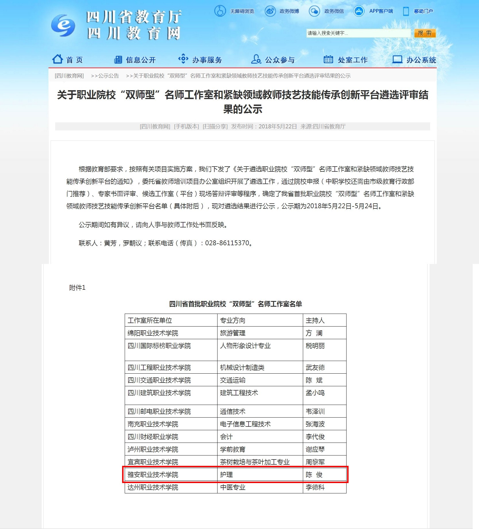 5月22日,护理专业陈俊老师主持的职业院校“双师型”名师工作室顺利通过申报、专家书面评审、候选工作室现场答辩评审等程序,入围我省首批职业院校“双师型”名师工作室名单。