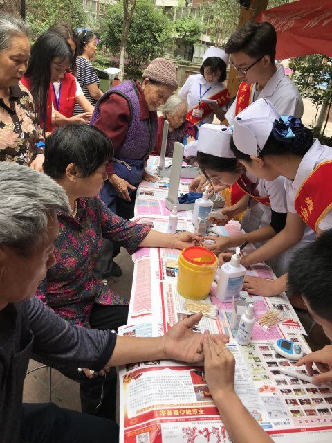 志愿者们热情的为居民们测血糖量血压,并一丝不苟的对测量数据进行了认真详细的记录,在询问居民们的身体状况后,耐心向居民们解释如何有效改善不良的生活习惯。活动分工有序,开展顺利。活动结束时居民也提出意见,希望我们可以登记居民电话号码,并向专业老师报备,老师电话回访给出专业意见。