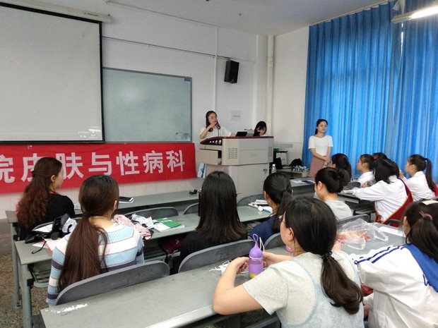 为了响应"5.25国际爱肤日",提高同学们的护肤意识,w66旗舰厅官网附属医院的牟双梦和黎薇两位老师在青年路校区教学楼B205开展美容护肤讲座。本次讲座由护理系党支部副书记李敏主持,共有医学美容技术、护理等专业108名同学参加。
