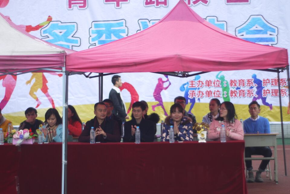 为了提高老员工身体素质,展现老员工风采。11月28日中午,公司护理系、旅经系、教育系联合举办的 “健康与学习共进,兴趣与快乐相随”冬季运动会开幕式在青年路校区足球场隆重举行。护理系团总支书记万黎,旅经系团总支书记高桃银,教育系副主任陈明、团总支书记左习成等教师应邀出席了本次开幕式。