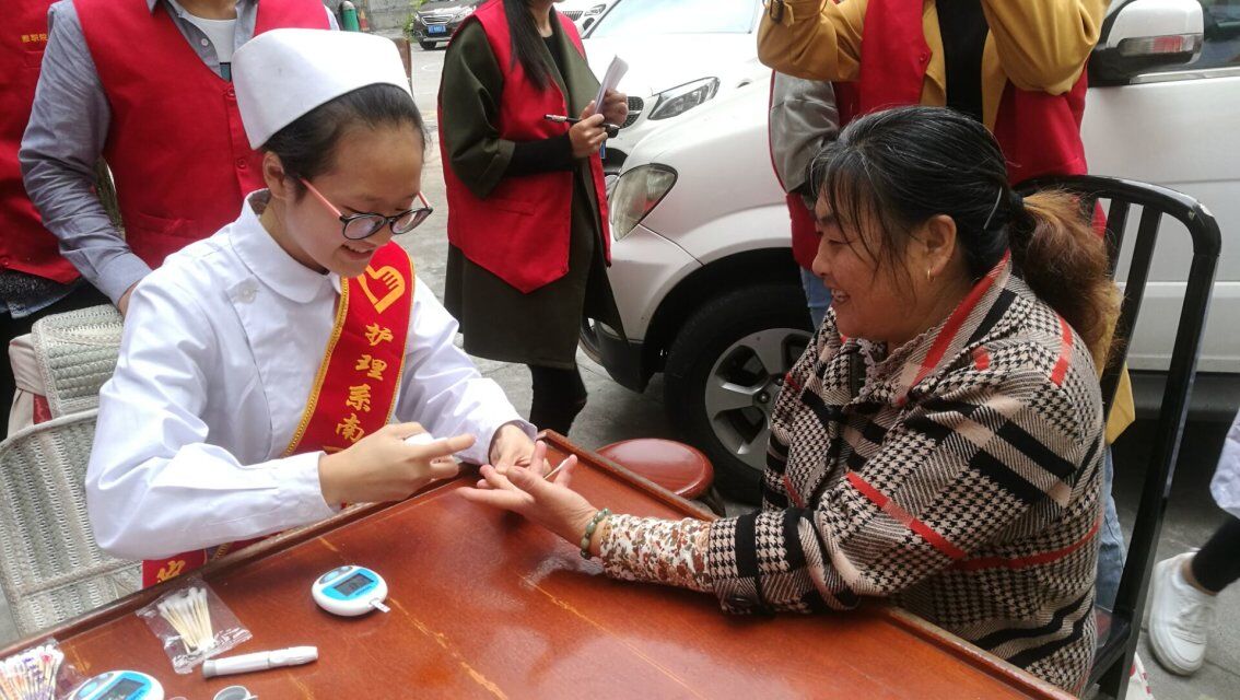 10月17日下午,护理系青年志愿者协会在雅安市雨城区光网智慧小区开展了“秋日健康助航”社区义诊活动。志愿者们斗志昂扬,以饱满的热情和实际行动弘扬正能量,传递爱心。