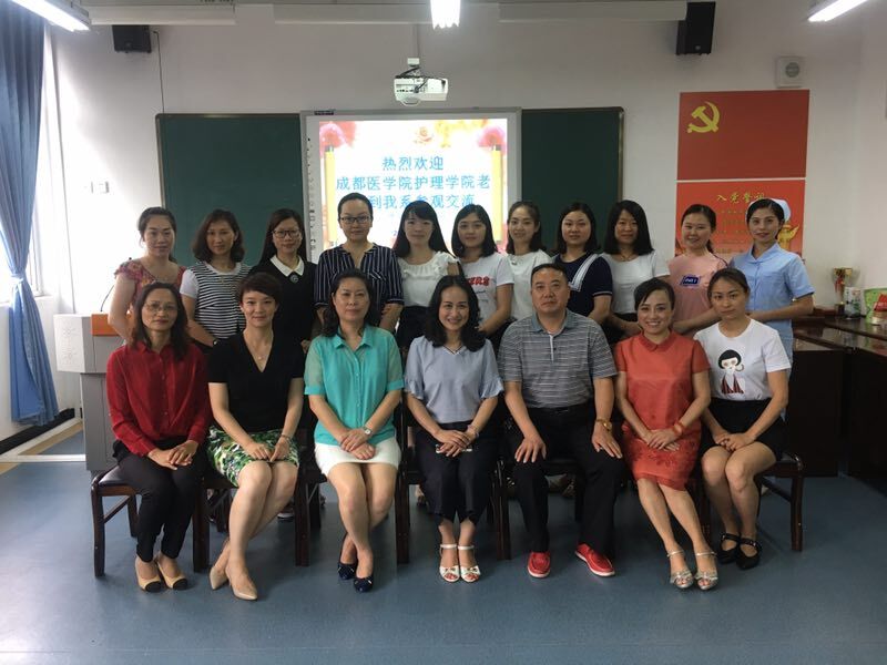 7月6日下午,成都医公司w66利来旗舰厅一行8人在书记刘群峰、经理赵小玉、副经理曾兢等领导的陪同下来公司护理系参观交流,我系王静主任,教研室主任陈俊及护理系教师热情接待。