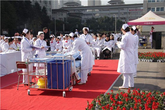 12月6日上午10:30,由雅安市教育局和社会保障局共同主办,w66旗舰厅官网承办的“雅安市中职员工技能大赛”在青年路校区图书楼前拉开序幕。公司教务处处长彭裕红、副处长邱平,医学系副主任杨志伟,护理系主任王静、副主任廖书娟,药检系副主任李顺源出席了此次大赛,护理系教研室主任陈俊及李婧等老师担任评委。