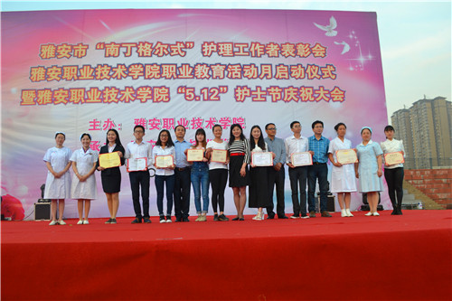 会上,来自雅安全市的32名护理工作者被授予雅安市第六届“南丁格尔式”护理工作者称号。其中,公司护理系副主任廖书娟、附属医院急诊科护士长饶广惠获得此表彰。