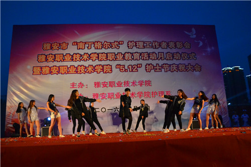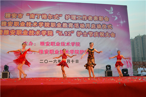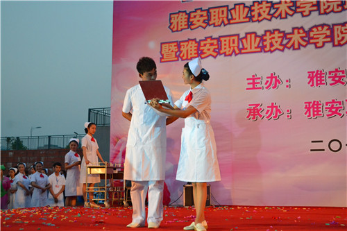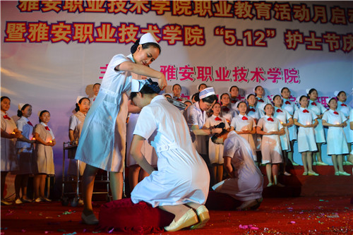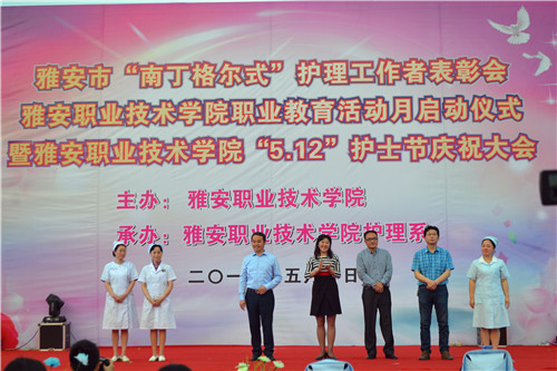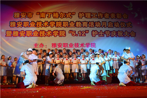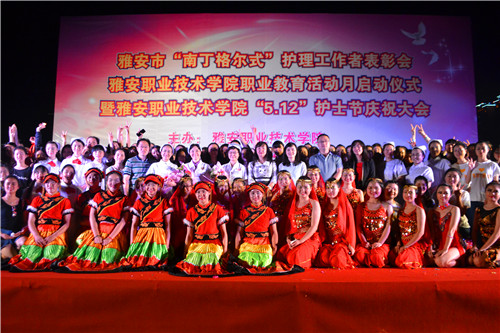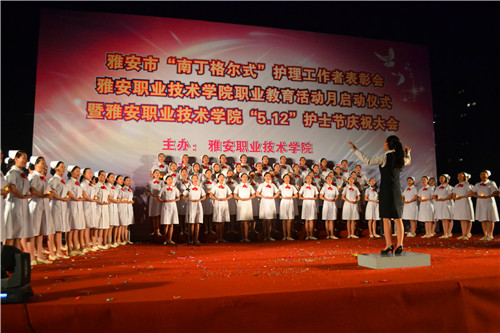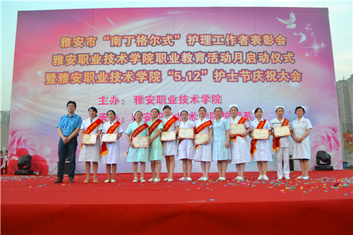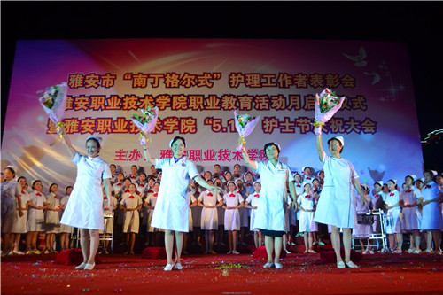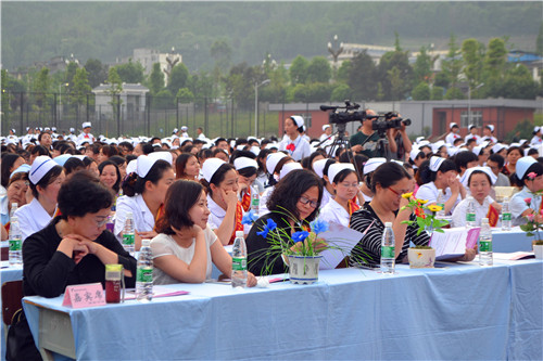 为庆祝“5.12”国际护士节,弘扬“南丁格尔”精神,5月10日晚,由护理系承办的雅安市“南丁格尔式”护理工作者表彰会暨“5.12”护士节庆祝大会在青年路校区田径场隆重举行。公司党委书记张大凯,经理石静,党委副书记付洪涛,党委委员、副经理樊先茂,党委委员、成人教育与培训处处长宋立智,公司综合职能部门、各系部负责人,以及雅安市护理学会理事长、雅安市中医医院护理部主任黄丽琼,副理事长、市第二人民医院护理部主任伍雅琼,副理事长、解放军第37军医院护理部主任朱永梅,护理学会常务理事等也莅临现场,与公司2000余名师生共同参加了此次活动。