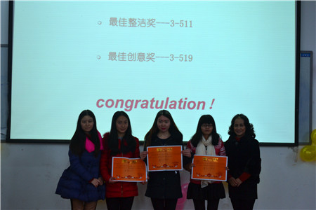 首先,王静主任对本学期寝室设计大赛的圆满落幕发表致词,她表示:“此次寝室设计大赛的开展,不仅丰富了我系广老员工的课余生活,更推动了公司宿舍以及校园文化的发展,为员工营造了良好的学习生活氛围。”接下来,隆重的颁奖仪式就此拉开帷幕。多个温馨而富有创意的寝室,在一番激烈的精彩角逐后,3栋511和4栋315寝室共同荣获一等奖,3栋325、619和4栋207、301寝室共同荣获二等奖,3栋519、4栋318和A栋613等寝室共同荣获三等奖,3栋330、4栋219和A栋408等寝室共同荣获优秀奖,更有其他特殊奖项:如最佳整洁奖、最佳创意奖、最佳环保奖等奖项。另外,在期末寝室评比中3栋201、4栋204、A栋403和B栋213等寝室荣获“优秀寝室”的称号。劳生部部长也热情地为同学们讲解教室、寝室卫生规章制度,并希望同学们能继续保持和维护寝室的卫生。