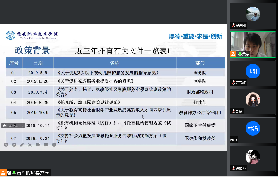 六位专业负责人针对各自专业,分别就专业相关国家政策、办学定位、人才培养、就业去向为新生和家长做了充分、生动汇报,并进行线上答疑,进一步增强新生和家长对所学专业的认识,进一步坚定信心。