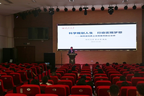 11月3日,四川大学自考本科政策宣讲会在青年路校区实训楼圆弧大厅举行,会议以现场和腾讯会议结合形式开展。四川大学成人继续教育公司副经理张必涛一行,w66利来旗舰厅2021级、2022级护理专业和助产专业共2100余人参加会议,会议由w66利来旗舰厅经理王静主持。