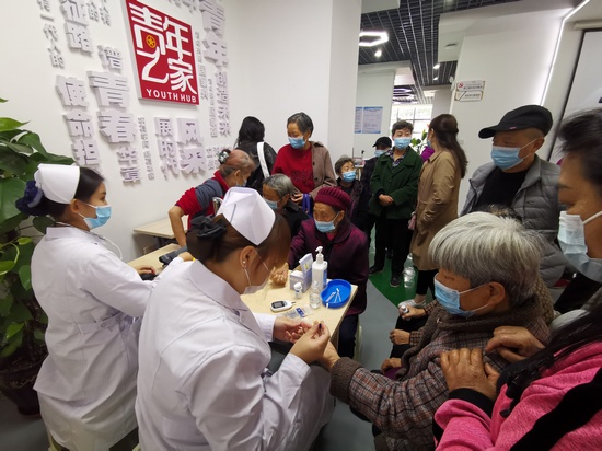 活动中2位老师结合临床案例,对老年人常见病如:糖尿病、冠心病、脑卒中的识别和处理,用通俗易懂的语言,深入浅出的讲解,获得社区居民一致好评。最后两位老师带领员工志愿者为社区老年人进行义诊,包括血压,血糖测量、健康知识宣传等。