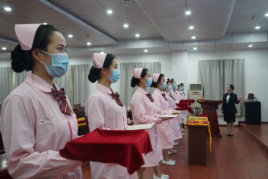 中国人民解放军联勤保障部队九四五医院为提升礼仪队的团队素养能力, 以便礼仪队今后在单位所需的各种礼仪保障工作中充分发挥作用,展示945医院良好形象,特邀公司谢琳娜老师于2022年11月12日进行礼仪队实操培训。护理部吕小静主任亲临现场,礼仪队全体成员统一着队服参加了培训。