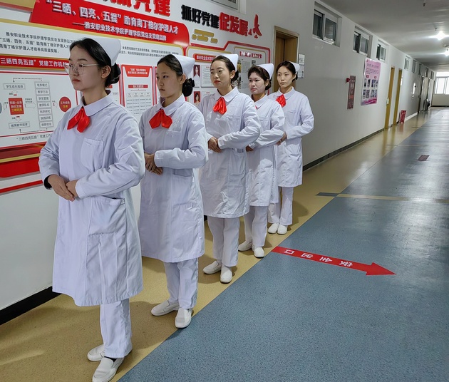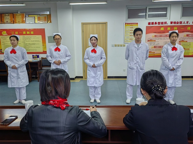 3月23日,重庆医科大学附属第二医院护士长陈英、护理部干事边彩虹到公司选拔实习生,面试在青年路校区实训楼606、607举行,98名同学参加此次面试。