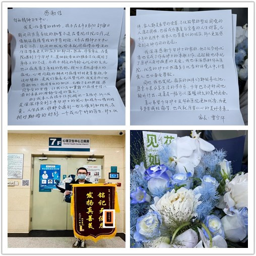 患者的母亲在信中说,孩子在医院精神卫生中心治疗期间,看到了卞华护士感人的一面。卞华护士和自己的孩子年龄相仿,是阳光帅气的男护士,每天用标准的普通话、专业知识解释治疗中的各种问题和注意事项,耐心与孩子沟通交流,帮助她缓解压力,减轻焦虑;细心指导孩子用药治疗,工作责任心强,很有上进心,她对卞华同学专业的医疗指导和无微不至的照顾表示由衷感谢。