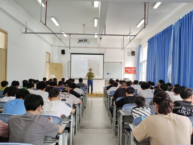 讲座中,主讲人通过ppt,利用图片、数据给同学们讲解和分析吸烟、醉酒可能导致的疾病、二手烟对身体的危害、酒精对人体大脑、肝、胃等脏器的危害。同时还用一个个真实的案例告诫同学们拒绝吸烟、醉酒,要有健康的生活方式,最后以互动的形式活跃了现场的氛围。
