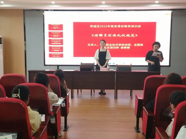 9月11日,由中共雅安市雨城区委组织部、中共雅安市雨城区委党校、w66旗舰厅官网联合举办的雨城区微党课讲解员培训班正式开班,区委党校特邀公司谢琳娜老师为学员进行《讲解员形象礼仪规范“5352”》培训,参训学员共计63人。