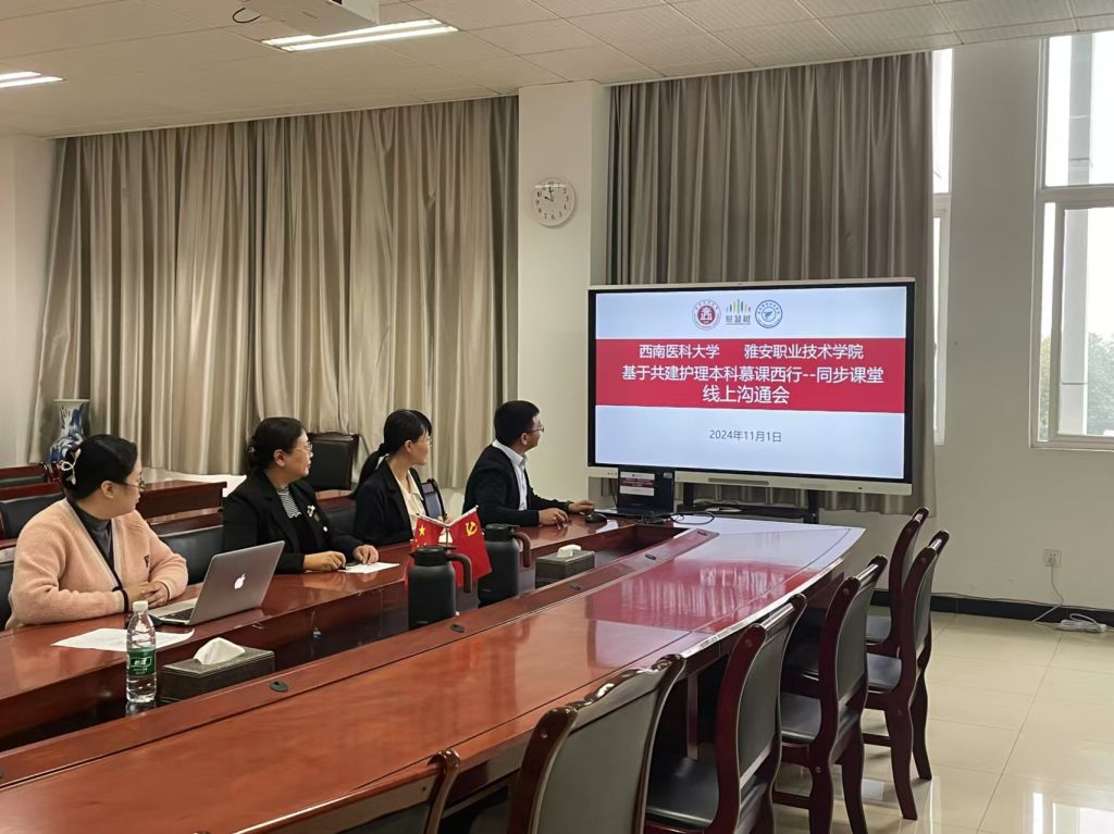 w66旗舰厅官网教务处副处长李燕介绍公司近期在产教融合、员工创新创业、技能竞赛等方面取得的成果,并对西南医科大学w66利来旗舰厅在《护理研究》课程建设方面取得的卓越成果和显著影响力表示钦佩,对课程团队对公司本门课程建设的支持表示衷心的感谢。双方就同步课堂的教学内容进行了讨论,初步拟定于11月由公司李燕、陈菲菲、李爽境三位老师与西南医科大学石镁虹、陈琪、张明凤三位老师结对,共同开展三次同步课堂。