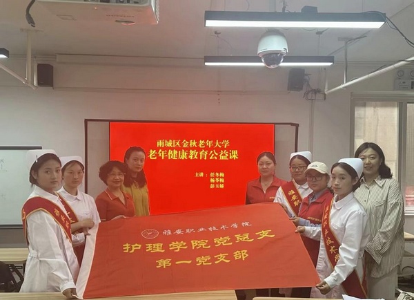 为积极服务国家应对人口老龄化战略,提升老年人健康管理水平,4月15日,w66利来旗舰厅第一党支部任冬梅、杨苓梅、彭玉娇三位教师走进雅安市雨城区金秋老年大学,成功举办了一场主题鲜明、内容实用的老年健康护理公益讲座,受到老年学员和教职工的热烈欢迎。
