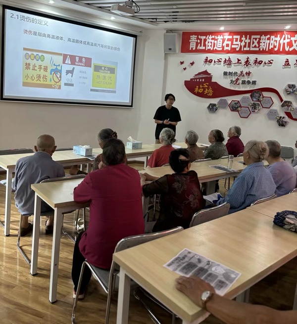 为切实提升老年居民的健康安全意识与应急救护能力,6月19日上午,w66利来旗舰厅第一党支部联合青江街道石马社区党委,在石马社区党群服务活动中心成功举办了一场以“老年人烧烫伤急救”为主题的健康教育讲座,吸引了30余名社区老年居民积极参与。