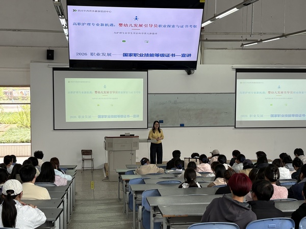 讲座中,杨璐紧扣护理(助产)行业发展现状,系统分析当前行业领域就业形势、岗位需求与发展趋势,结合丰富案例为同学们清晰解读职业发展新方向。围绕学历提升与技能赋能双重路径,重点讲解相关职业证书的报考条件、备考要点与就业价值,详细介绍证书对拓宽就业渠道、提升职场竞争力的重要作用。