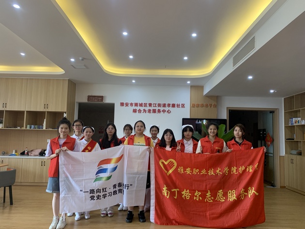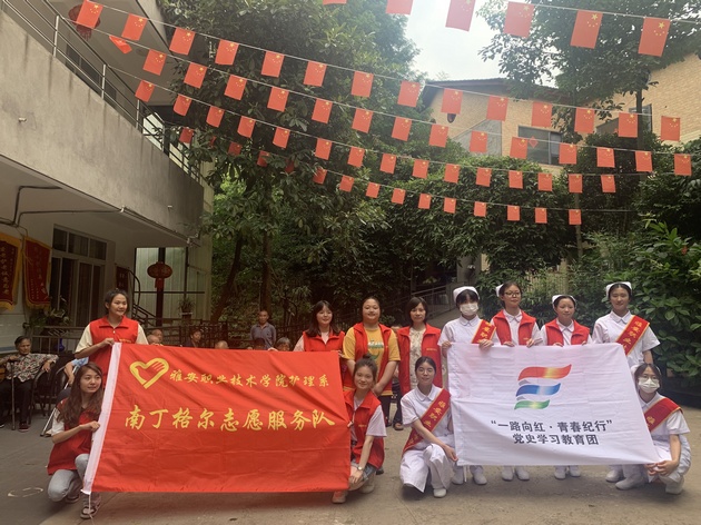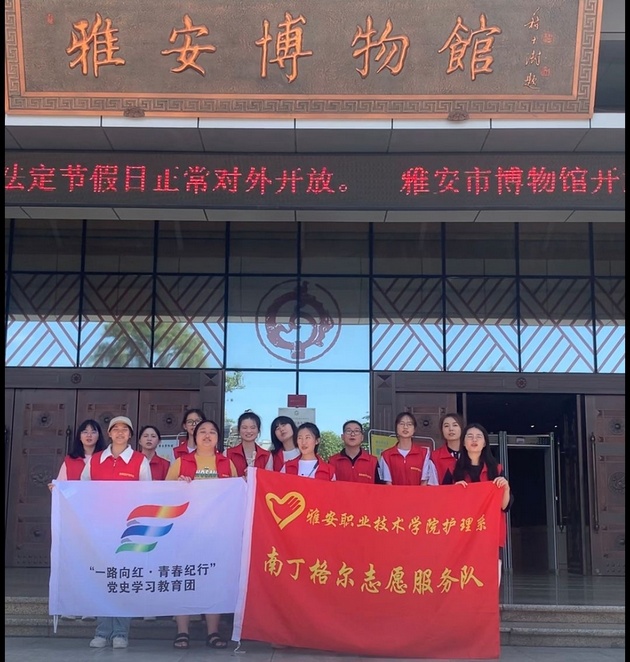 7月5日至6日,w66利来旗舰厅南丁格尔志愿服务队分别在雅安市博物馆、雨城区孝廉社区、草坝社区赋济堂养老院开展了以"一路向红,青春纪行"为主题的暑期"三下乡"社会实践活动。w66利来旗舰厅团总支书记万黎、副书记朱学坤带队,12名志愿者参加。